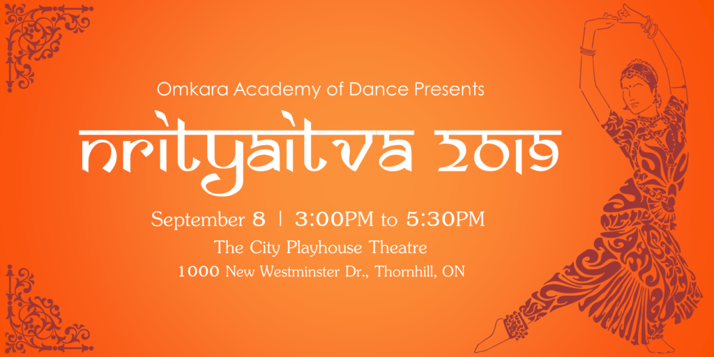 « All Events This event has passed. Nrityaitva 2019 – Celebration of dance 08/09/2019 @ 3:00 pm - 5:30 pm Event Navigation « Omkara Academy of Dance Presents Bharatanatayam Workshop 2019 Garba Workshop 2019 » + Google Calendar+ iCal Export Details Date: 08/09/2019 Time: 3:00 pm - 5:30 pm Event Categories: Shows and Performances, Workshops Organizer Omkara Academy Phone: 6478789009 Email: rupal@omkaraacademy.com Website: www.omkaraacademy.com Venue City Play House Theater 1000 West Minster Dr. Vaughan, ON L4J8G3 Canada + Google Map